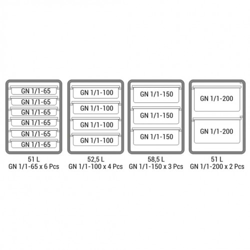- Dimensions extérieures : adaptées pour bacs GN 1/1 (détails sur demande)