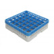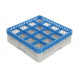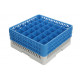 Les bases grises sont dotées d’une double paroi, ce qui confère au produit stabilité et robustesse. Les verres sont ainsi lavés, transportés et stockés en toute sécurité. Les rehausses bleues viennent se fixer facilement et définitivement sur les bases et permettent de s’adapter à la hauteur des verres.